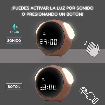 Mi hijo de 10 años necesitaba algo que lo ayudara a levantarse para la escuela solo, ya que todavía no le damos teléfono. ¡Este reloj es perfecto! Le encantan que lo saluda cada maña y que le hace ojitos al batirlo, además, el indicador de batería lo mantiene consciente de cuándo tiene que cargarlo. La función de luz nocturna activada por sonido es genial para sus idas al baño, anes se tropezaba y le daba miedo encontrarse todo a oscuras. Lo mejor es que le está enseñando responsabilidad aunque el piense que es un juguete.