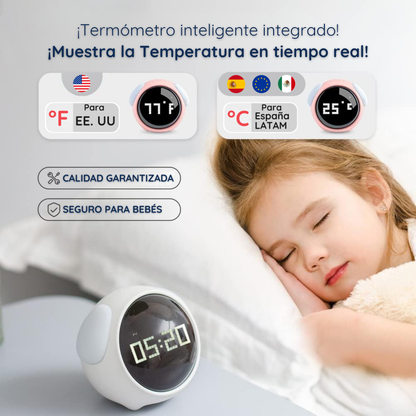 Síp, tengo 28 años y compré este un reloj despertador para niños para mí y cero arrepentimientos. El corazón y los ojitos de píxeles son super lindos, y genuinamente me hace reir ver la carita en la pantalla al despertar. La pantalla de temperatura es útil, la lámpara activada por sonido es conveniente para ir al baño, y agitarlo para posponer la alarma es mi función favorita. Es adorable, y honestamente hace que despertarse a trabajar sea menos miserable. El rosado le da una vibra súper linda a mi cuarto.